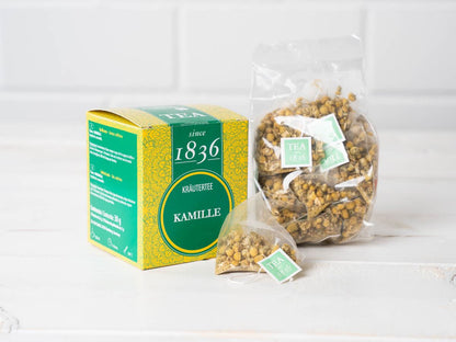 Heerlijk zachte en ontspannende kruideninfusie van kamille. Eén doosje bevat 15 theebuiltjes.