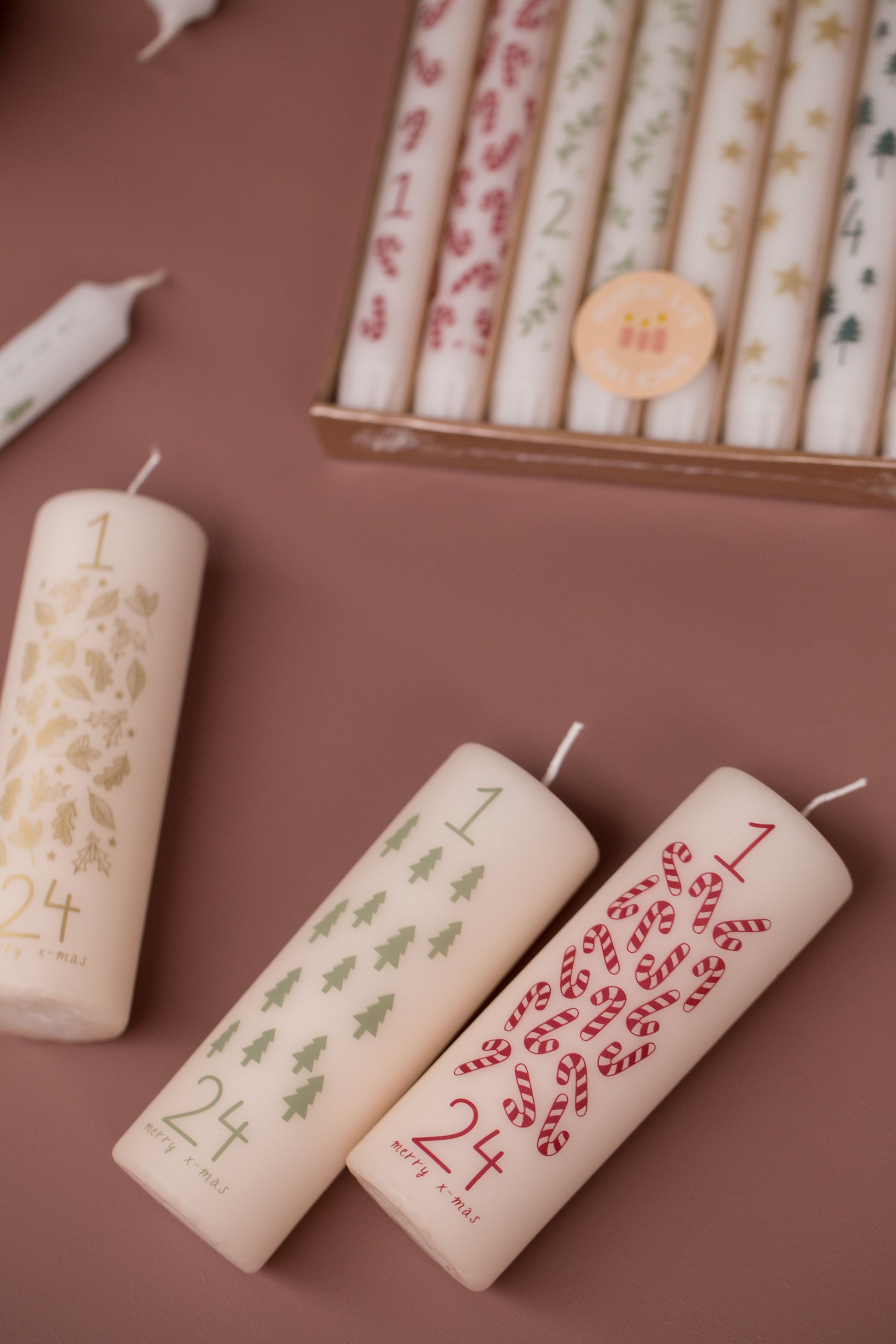 Prachtige adventskaars van Rustik Lys. Versierd met de handgetekende BY KIMMI printjes die je alleen vindt bij Rustik Lys. Wist je dat? De printjes worden één voor één geprint op de kaars.