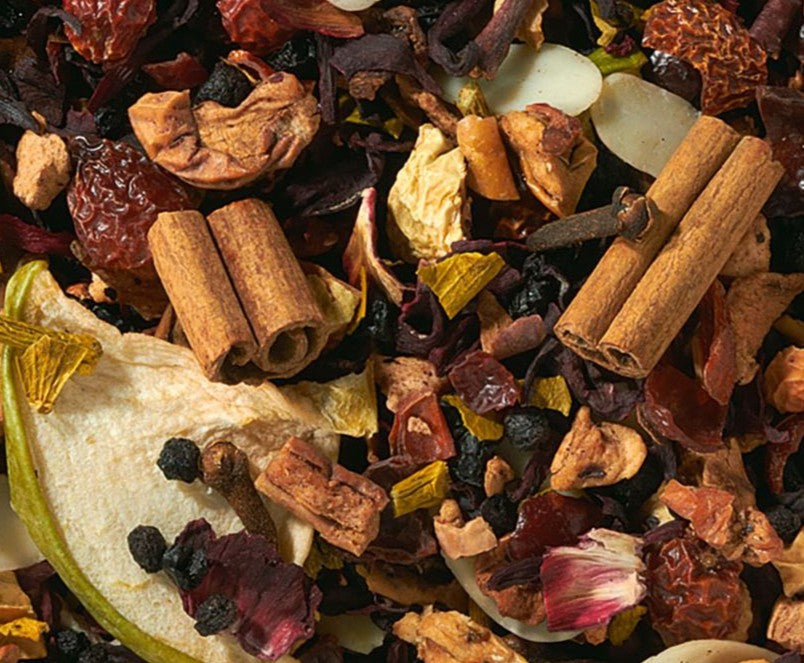 Heerlijke infusie met de smaak van gebakken appeltjes! Verwen jezelf met deze heerlijke combinatie van appel, hibiscus, vlierbes, rozenbottel, maretak, kaneelstokjes, amandelschilfers, aroma en kruidnagel.
