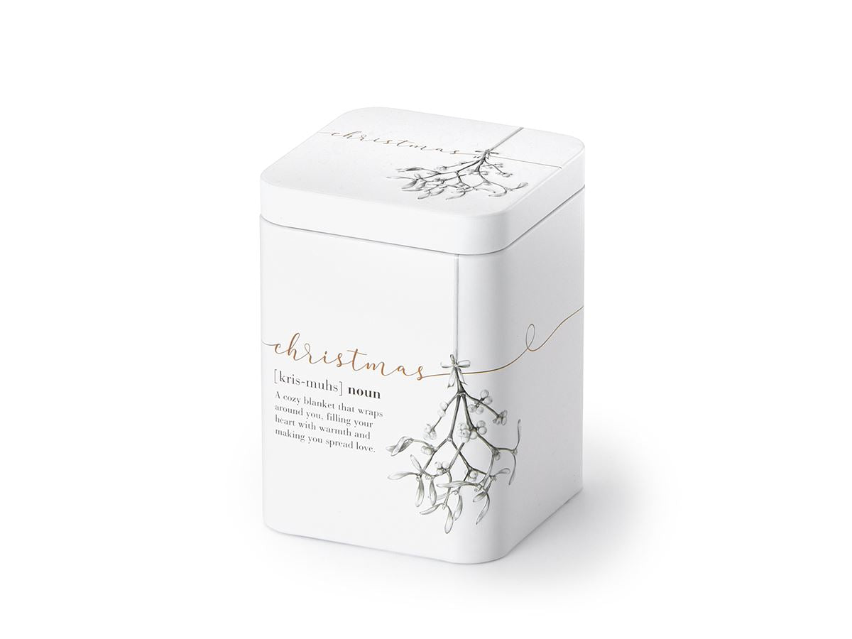 Mooi theeblikje met opschrift "Christmas" in reliëf.