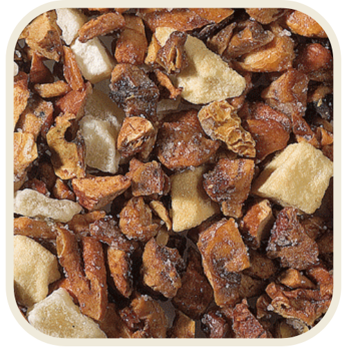 Vruchteninfusie met stukjes appel, ananas, een samenstelling met veel karakter en veel vitamine C.